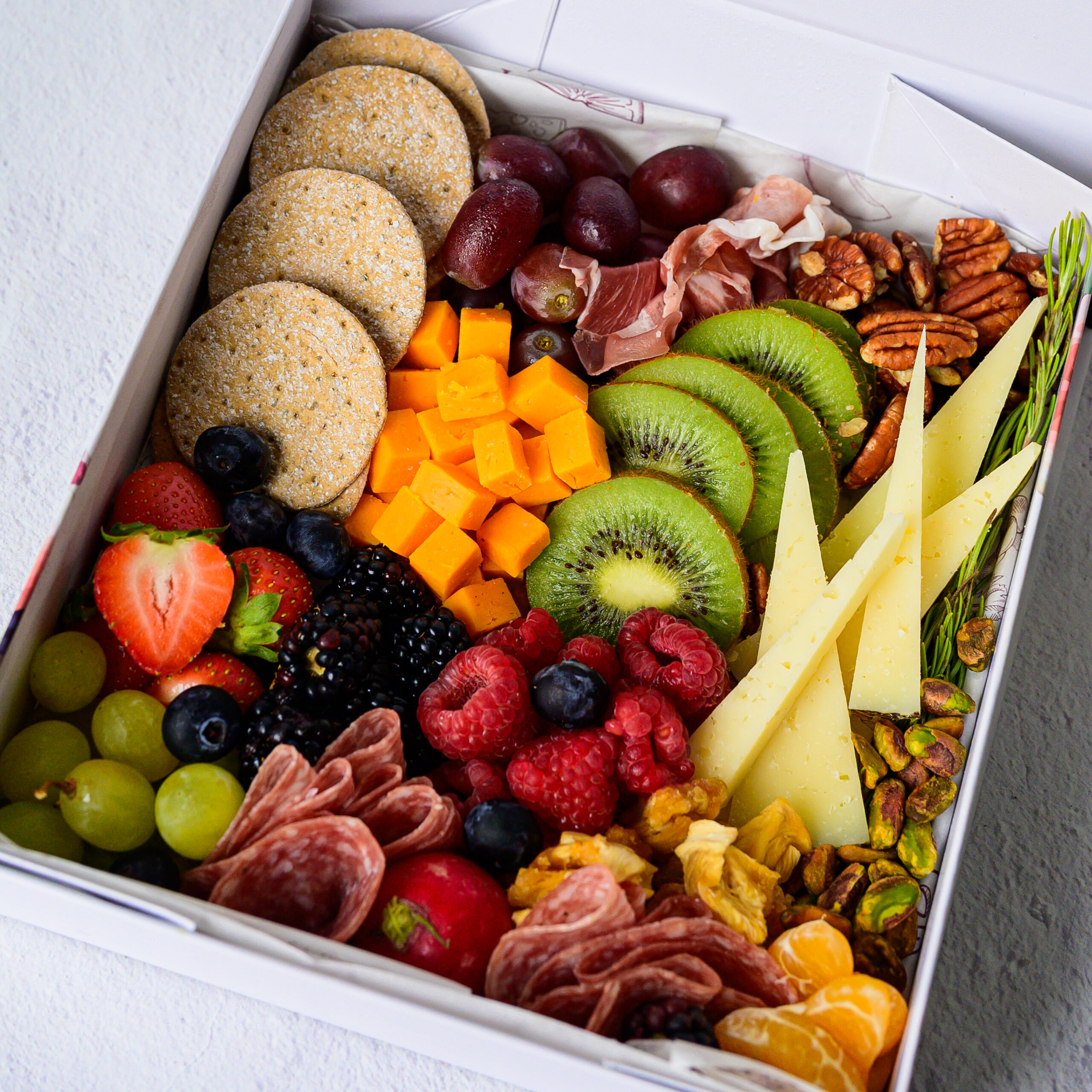Feeds 3 – 5 people. Celebrate the art of togetherness with this show-stopping graze box, designed to bring people together. Overflowing with vibrant fruits, premium cheeses, charcuterie, nuts, and gourmet nibbles, it’s perfect for sharing in style — whether at the office, over brunch, or during a cozy get-together. Thoughtfully arranged and ready to enjoy, this is grazing elevated.
